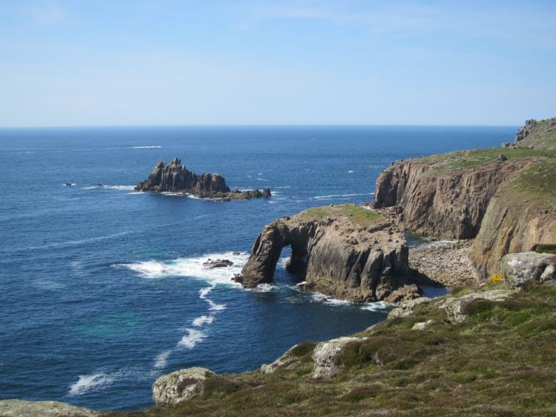 Land’s End, in der Nähe von Penzance, Cornwall gelegen, ist eine Ortschaft und die gleichnamige Landzunge. Die Spitze der Landzunge ist der westlichste Punkt Englands auf der Hauptinsel Großbritanniens.